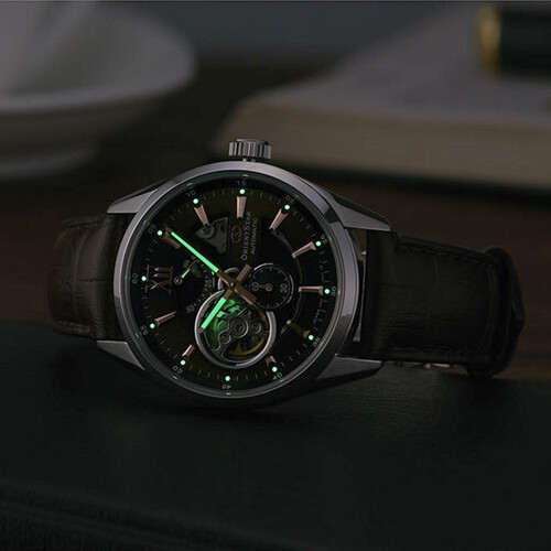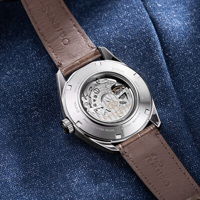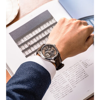 采用蓝宝石水晶玻璃表镜,透光性好,色泽光亮。不锈钢材质表冠,操作简便。可透视螺旋表盘,感受机械之美。