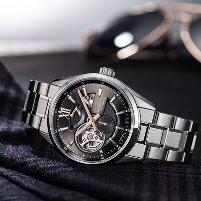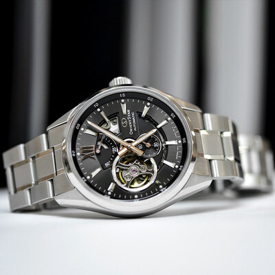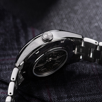 黑金镂空盘面,视觉简约又大气,直观感受机芯运转的韵律之美。不锈钢材质表带,匠心抛光打磨,触感温润细腻,十分舒适。