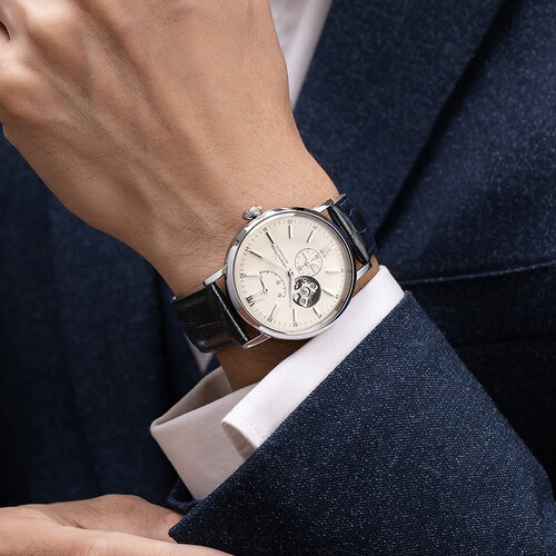 不对称的镂空设计表盘,非常的复古时尚,很好的提升佩戴者的格调感。简洁实用的表冠,操作方便。三段折叠式的表扣,很好脱戴。