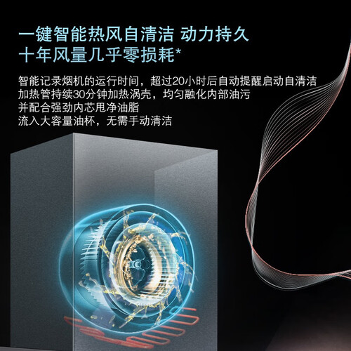 采用三角拢烟设计,增加操作台使用空间,助你尽情释放大厨风采。一键开启智能热风自清洁,均匀融化加热管的内部油污。