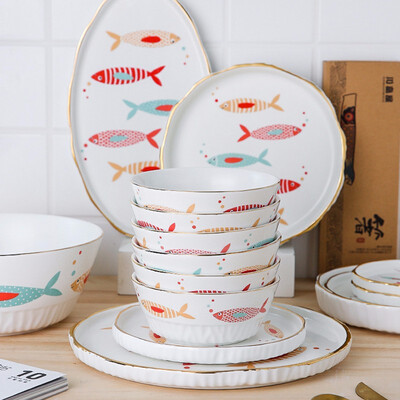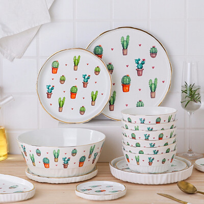 精选可爱图案彩绘陶瓷餐具套装