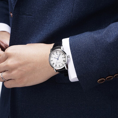 运用极简的暗夜蓝表盘,搭配银白冷色调的指针,彰显出幽静深邃的风范。自带动能储存显示功能,告别电量过低导致的走时不准。