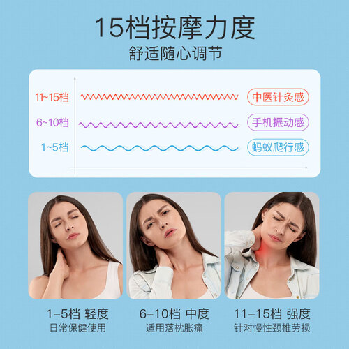 采用了德国的核心技术,每天15分钟赶走颈部的不适,缓解一天的疲劳。搭载了动态的感应技术,智能的停止,保护你的安全。