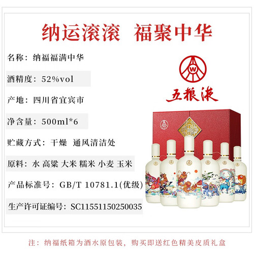 精选高粱、玉米、小麦、大米、糯米五种粮食酿造,酿造出五味协调美酒。精美礼盒,烫金福禄寿禧图案,喜庆美观,宴请送礼皆可。