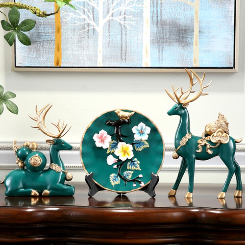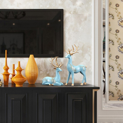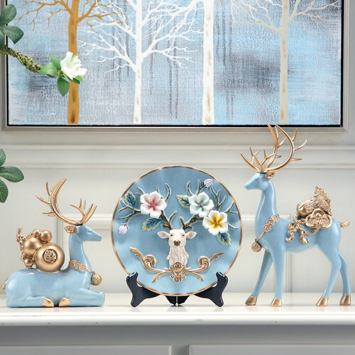 思泽诺浅蓝麋鹿装饰摆件