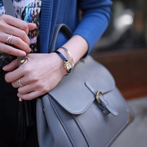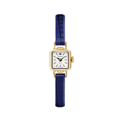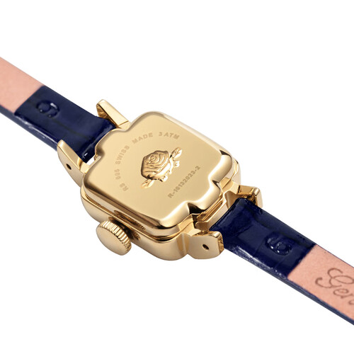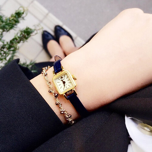 方形的表盘看起来很独特,戴在手腕上可彰显出优雅和大方的格调。蓝色的表带神秘又浪漫,能诠释出女性的高贵之感。