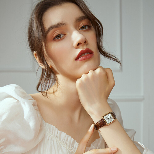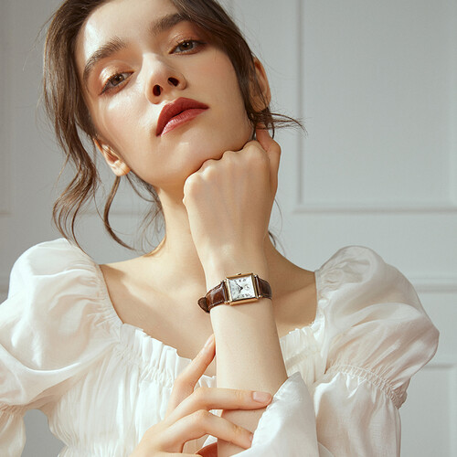 方正的金属表盘,将复古和现代设计理念相结合,佩戴在腕上更时尚。棕色皮质表带,还原文艺复兴时期的潮流感。