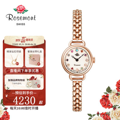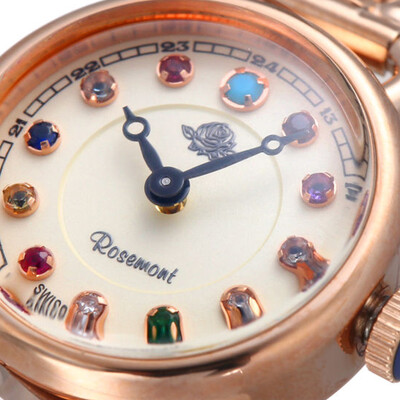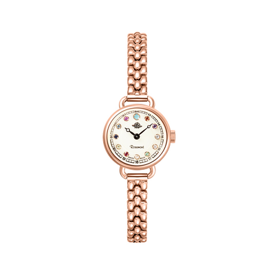 这款手表由彩色十二生辰石和玫瑰金表带组成,让时尚的金色中添加了一抹彩色,生动活泼。