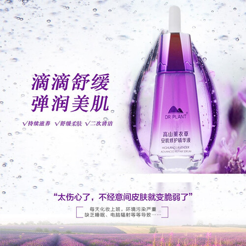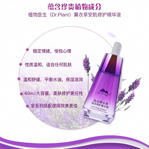 萃取天然薰衣草花提取物,成分温和,可以有效缓解肌肤干燥和泛油的问题,从肌底深层改善修复肌肤。