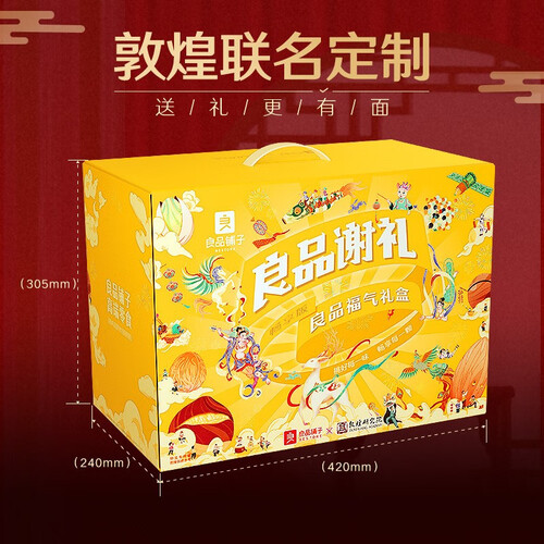 6.8斤大分量包装,分量足,可以满足家庭聚餐时的用量。外包装上具有趣味插画,富有敦煌元素和烫金工艺,过年送礼更有格调。