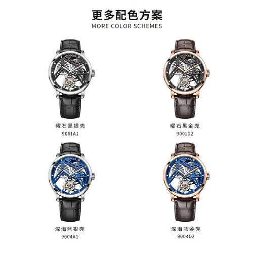 表面多层镂空的设计,内部运行一览无遗,给你更好的机械韵律美。高级缎面拉丝打磨,长久使用依旧如新。全景透视底盖,一览无余。