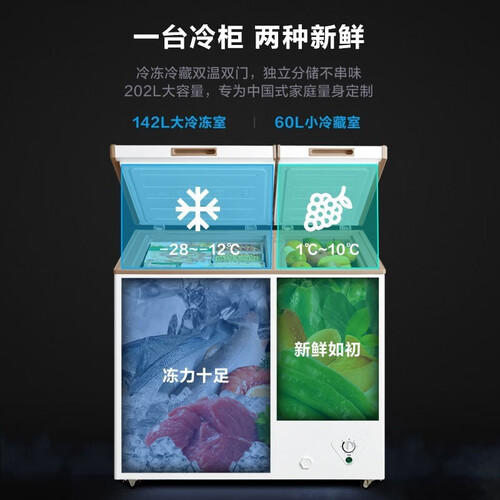 机身做工精湛,品质优良,使用寿命更长久。内置优质压缩机,性能澎湃,制冷更迅速。多重加固大门铰链,开合顺畅不费力。