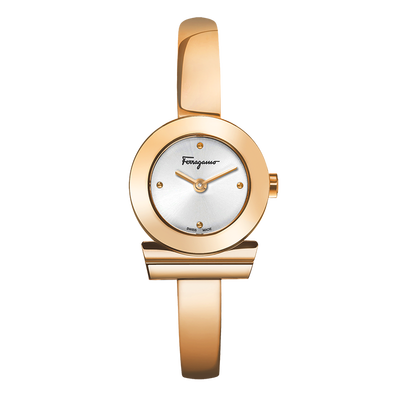 手镯式金属表带,线条流畅又圆润,轻松勾勒出纤纤玉腕,衬显女性的优雅迷人气质,并以镀金色来增添华丽质感,造型轻奢亮眼。
