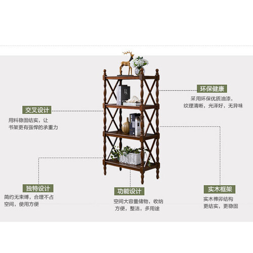 书架表面上漆均匀,雅黑色外观,表面光滑细腻,适合多种家装风格。镂空式设计,通风更透气,潮湿环境下不易发霉。