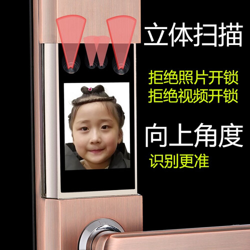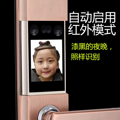拥有红外彩色双摄像头,夜间人脸识别准确,同时贴心的30°摄像头仰角设计,更方便开锁。内置加密芯片,信息安全有保障。