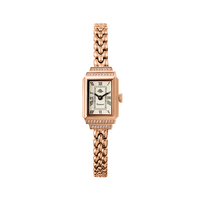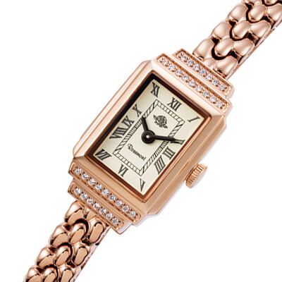 小巧玲珑的方形表,适合女性纤细的手腕,不显累赘厚重,衬托女性的优雅与娇美。排镶璀璨锆钻,绽放迷人光芒,更添魅力。