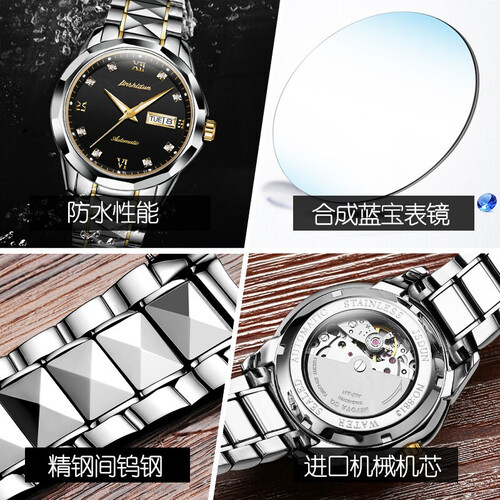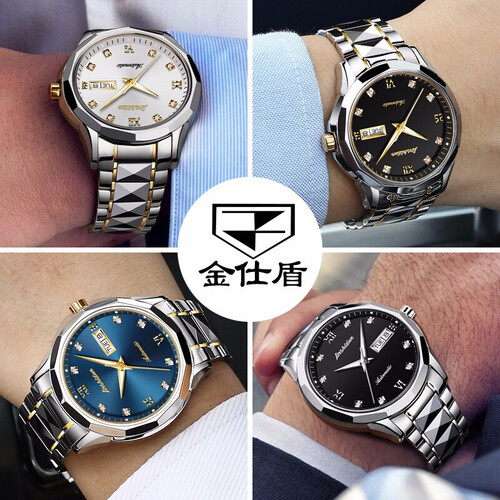 金仕盾钨钢间黑色防水机械表