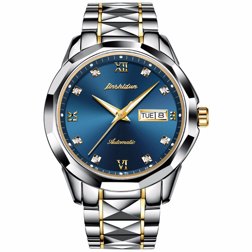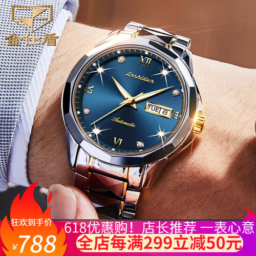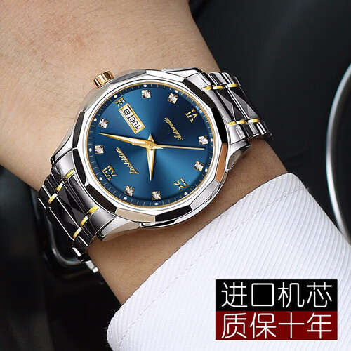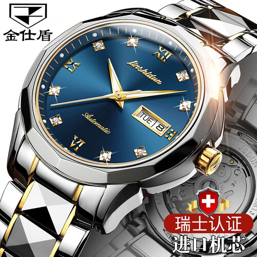 金仕盾钨钢间蓝色防水机械表