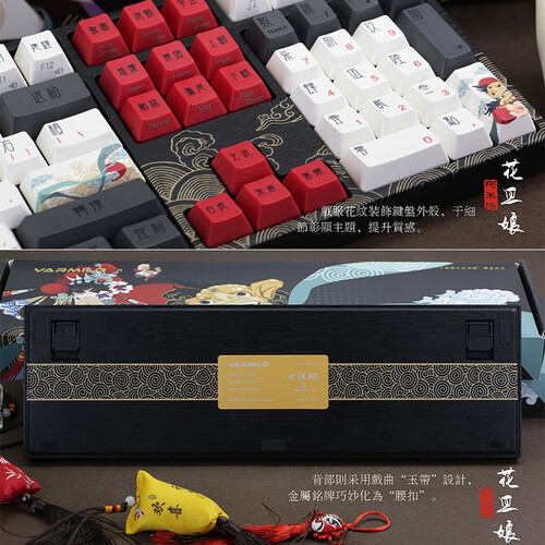 将科技与经典古风元素相融合,创新别致,巧妙的设计,时尚又实用。古典的键帽字体,既富有新意又具国风美感。