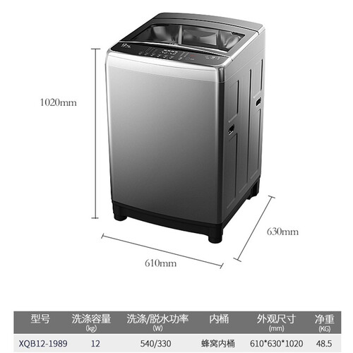 12公斤大容量设计,可以轻松清洗大件衣物,满足全家人的清洗需求。多个微孔规则分布桶壁,可以快速甩干泡沫。