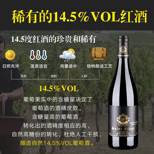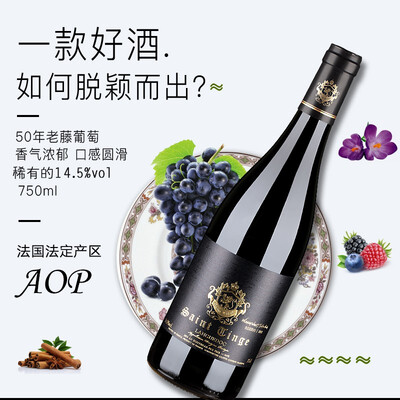 深宝石红色的酒液,释放出馥郁的热带水果芬芳香气。精选老藤葡萄酿造,散发浓郁饱满的果香,口感更纯正。