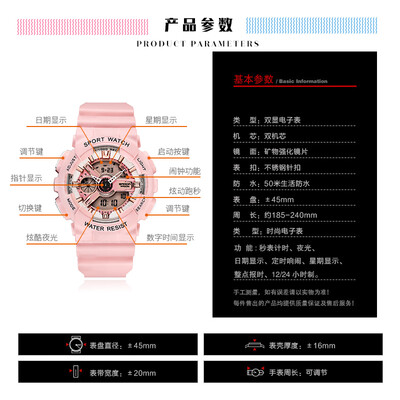 双显示的屏幕,尽显运动潮流风格。电子多功能机芯,走时准确稳定,无需经常上弦。