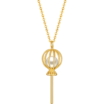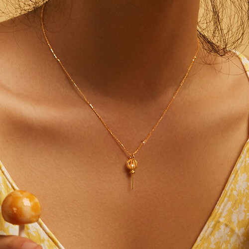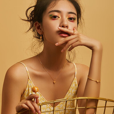 来自甜蜜糖果的灵感,配合花丝镶嵌工艺,打造出精致的棒棒糖项链。采用金丝镂空设计的包装纸,甜美之中又有雅韵。