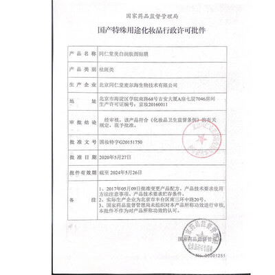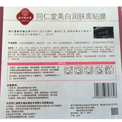 同仁堂 补水保湿面膜