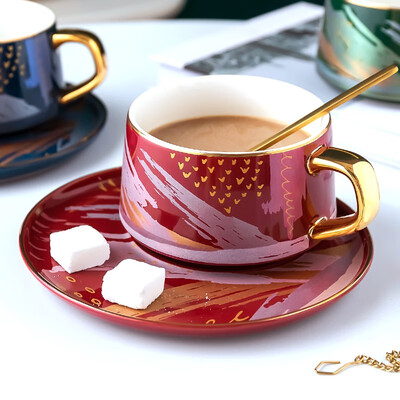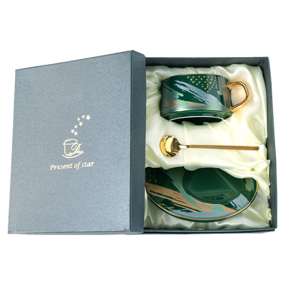 别致杯型设计,用金色点缀陶瓷艺术,呈现不同的视觉感受;采用进口贺利氏金水,人工描绘,成品颜色饱满,品质不凡。