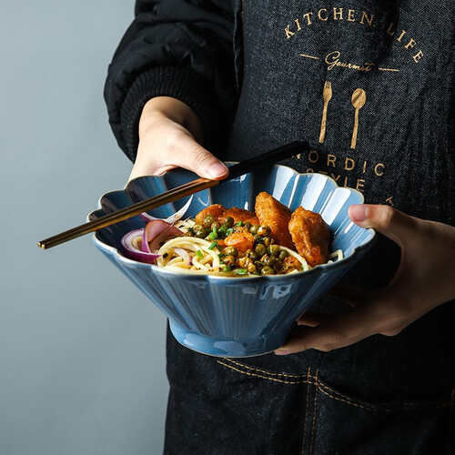 采用花边器型设计,外观别致、容量大,吃饭好心情、摆拍好风景;碗身线条圆润柔滑,触感舒适温润,端拿舒适。