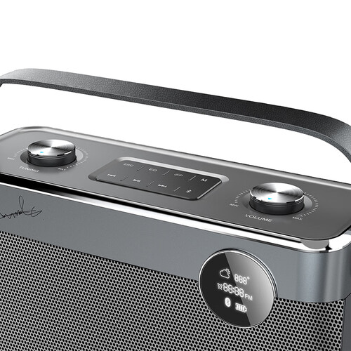 这款产品配备了便携式手提把手,户外携带轻松无负担,外出也能畅享优质音乐,且简约大气的外观造型不失精巧。