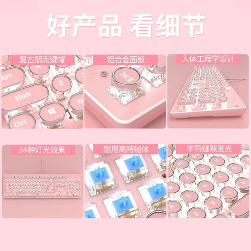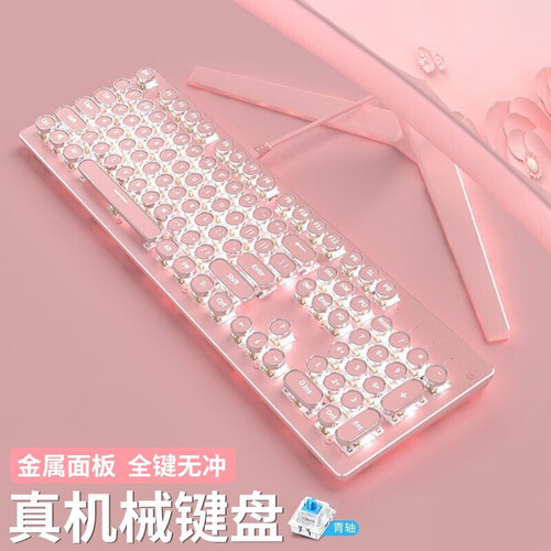 小清新风格的键盘外观,美感度提升,能够提供较好的装饰效果;全键无冲的结构处理,减少误操作,满足快速键入。