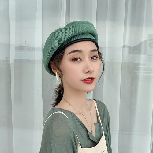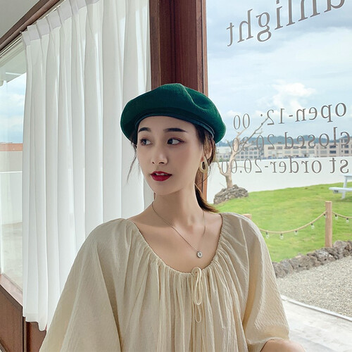 羊毛呢面料+PU包边设计,可提升帽子的品质感,且佩戴显气质。浅绿色贝雷帽,颜色自然柔和,并且带有几分清新感。