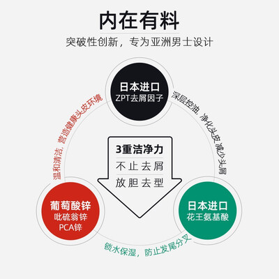 专为亚洲男士设计的一款洗发水,含有日本进口ZPT去屑分子,有效深层控油,净化头皮以减少头屑的产生,让头皮更加清爽舒适。