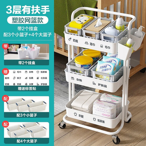 灵活移动万向轮,更换位置毫不费力;加粗碳钢,结构稳固,承重加倍不变形;沥水网篮设计,保持瓜果蔬菜新鲜,防止小物件掉落。