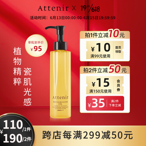 精选不同的结构油分子,组成黄金比例,能进一步溶解彩妆。可温和卸妆瞬间乳化,深层清洁彩妆油脂等,无需二次清洁。