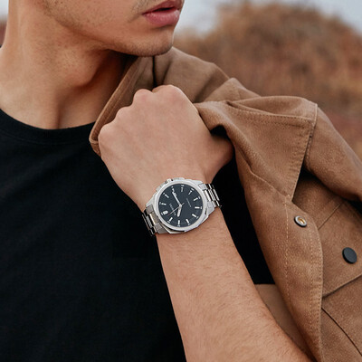 手表指针具有智能蓄光功能,日间能自动吸收光源,晚间便可清晰显现。表带采用实心不锈钢材质,坚固耐磨,不易磨损。