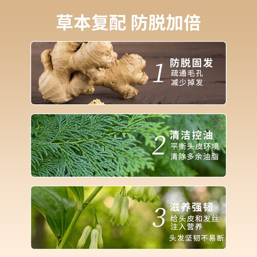 含有生姜成分,有效活热头皮清理毛囊。何首乌和侧柏叶可修复滋润发根与毛囊,用后减少掉发,秀发柔顺亮泽,从源头解决掉发问题。