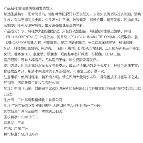 露法兰 生姜护发洗发水