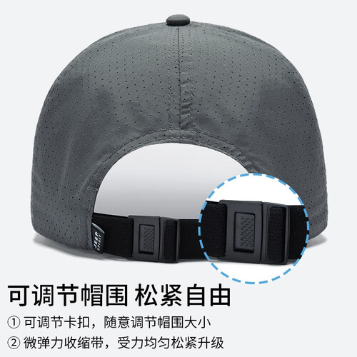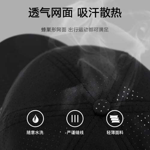 帽子选用网眼透气的速干材质。大面积的透气孔非常清爽,快速散热保持头发干爽。