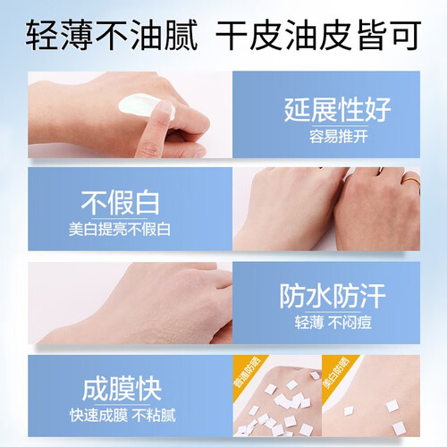 添加修护成分,能够减少肌肤因紫外线照射带来的不适感,有效修护抚平肌肤。藴含补水精华,能够提升肌肤的水润度,预防晒干。
