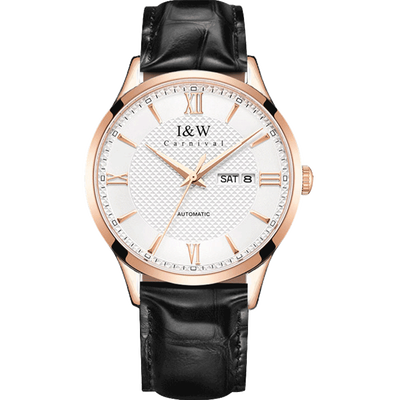 白色盘面设计,以玫瑰金线条萦绕,勾勒出华丽吸睛的时尚线条,搭配质感柔软的牛皮带,亲肤透气,佩戴体验舒适。