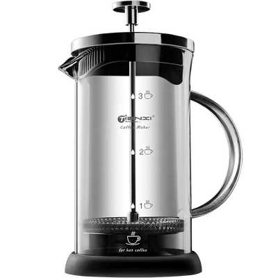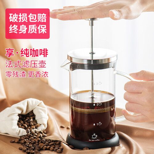 加厚玻璃材质透光率高,坚固耐用耐温差,可抵御200℃瞬时温差,健康安全。三层加粗弹簧,紧贴壶身,细密周到的过滤残渣。