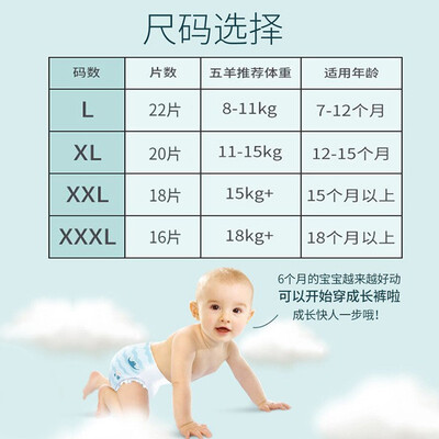 云朵般亲肤质感,带给宝宝舒适体验,以免小屁股会泛红。弹力腰围设计,可随着身型运动而变形,刚学爬学走的宝宝很适合。
