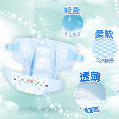 富含维E成分,温和无刺激,有效滋润保湿,呵护宝宝娇嫩肌肤。芯体纤薄轻盈,透气性良好,给屁屁如云朵般轻柔舒爽的触感。