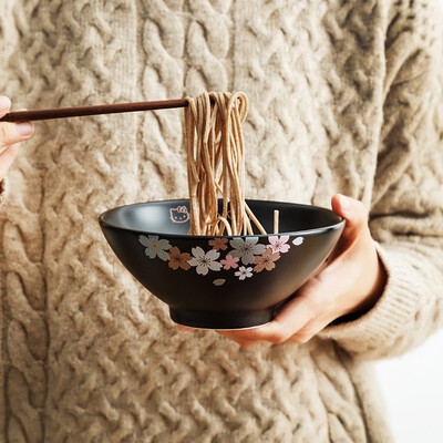 黑色亮光的釉面加上彩色樱花点缀,俏皮可爱又时尚经典;碗身细微的磨砂质感,摸着舒适又不易滑落,端拿更平稳。