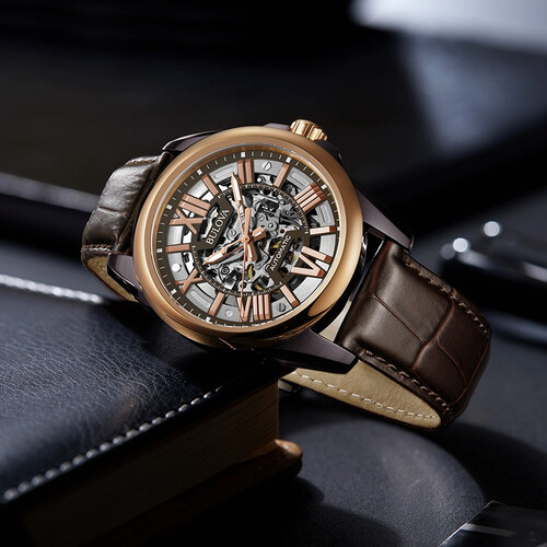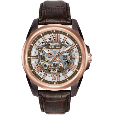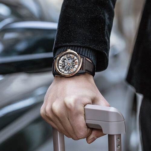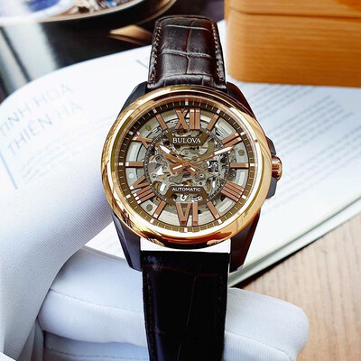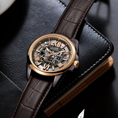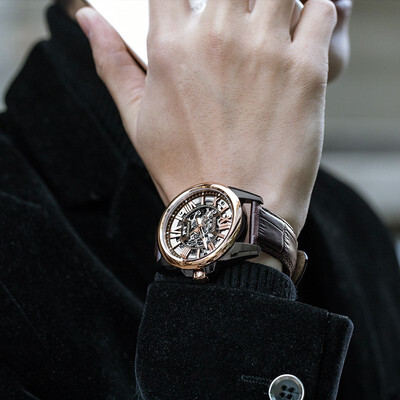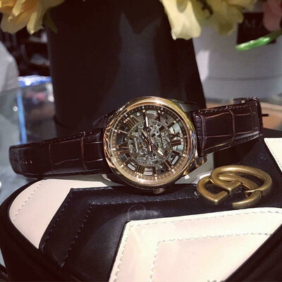 镂空的机械表盘,展现时尚新潮。矿物质强化玻璃的镜面,做工精细,耐腐不易褪色。全自动的机械机芯,误差较小。