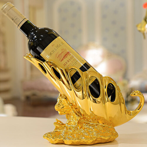 奇特抽象的造型,电镀金身工艺,给家居增添一丝豪华大气感,彰显家居档次;既是创意装饰摆件,也具有收纳红酒功能。