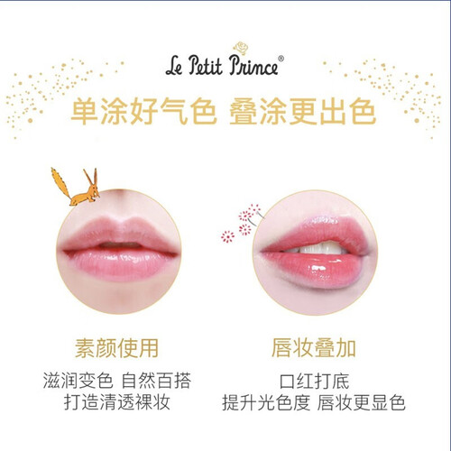 具有温感变色功能,上唇能够展现自然唇色,提升整体气色。添加角鲨烷以及多肽,淡化唇纹,持久修护肌肤问题。
