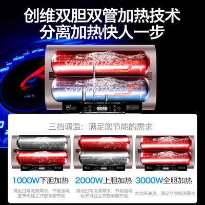 采用双胆双管加热技术,加热更快效率更高,满足全家人的畅洗需求。内置蓝晶钢双胆,防腐性能好,层层防护,滴水不漏更耐用。